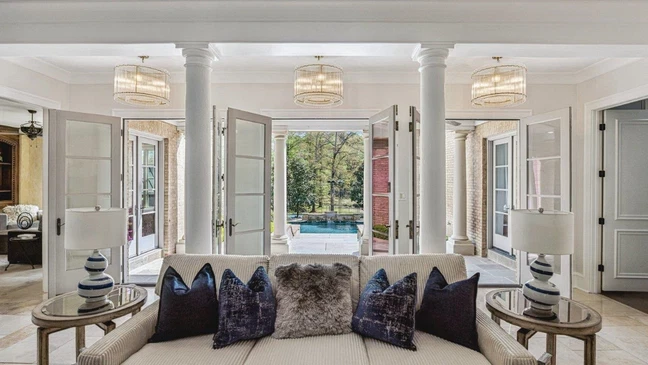 The home has over 13,000 square feet and several living spaces designed for daily use as well as larger gatherings.